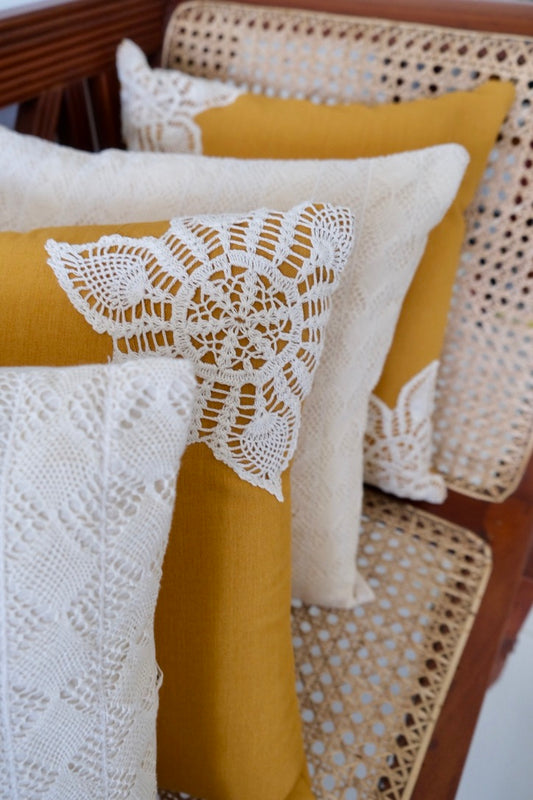 Mustard Beeralu (Bobbin Lace) Cushion Cover